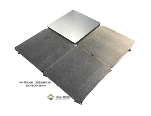 GRC網(wǎng)絡(luò)地板采用四角支撐結(jié)構(gòu),內(nèi)腔芯材采用硅酸鹽水泥、加強(qiáng)纖維等基材為板基,底面貼鍍鋅鋼板。