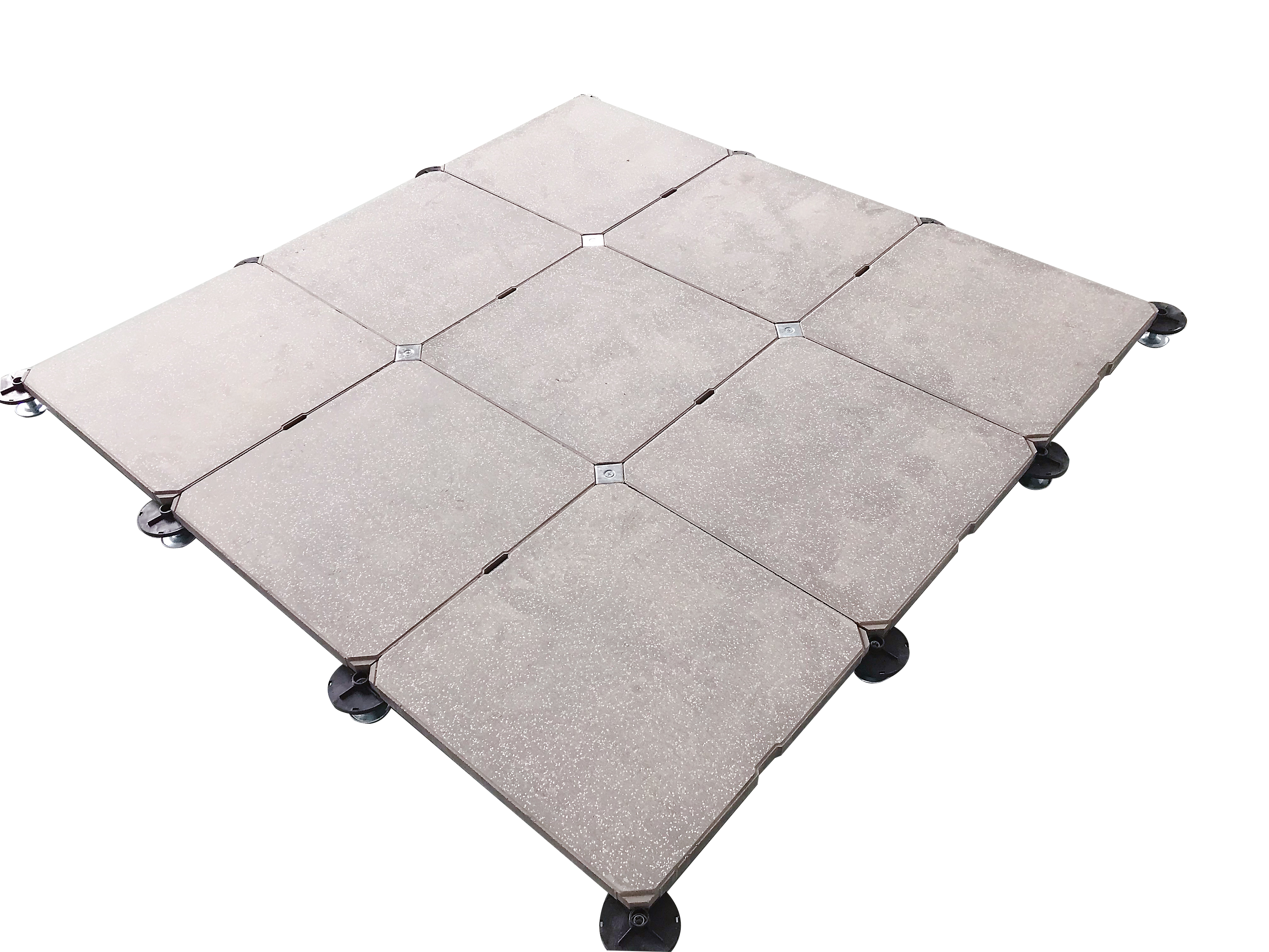 每塊地板自帶穿線孔,地板四角鍍鋅底座支撐,不帶橫梁系統(tǒng)。地板四角鍍鋅底座支承,不帶橫梁系統(tǒng)。傳統(tǒng) GRC 網(wǎng)絡(luò)地板四